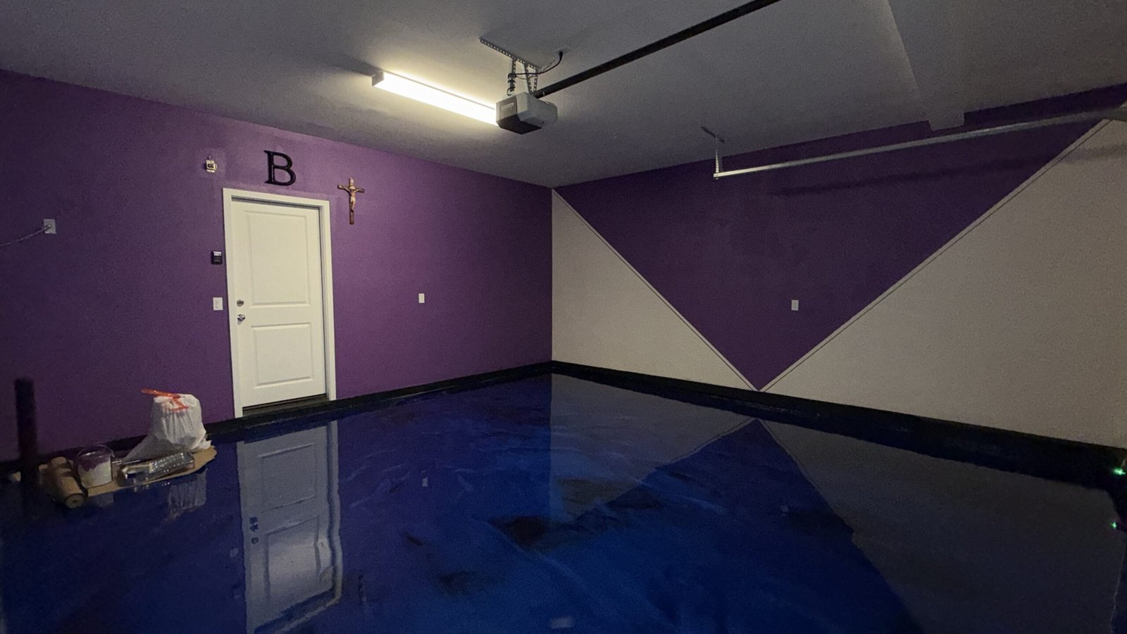 High-Gloss Finish: The reflective surface not only looks sleek but also enhances lighting in the garage.